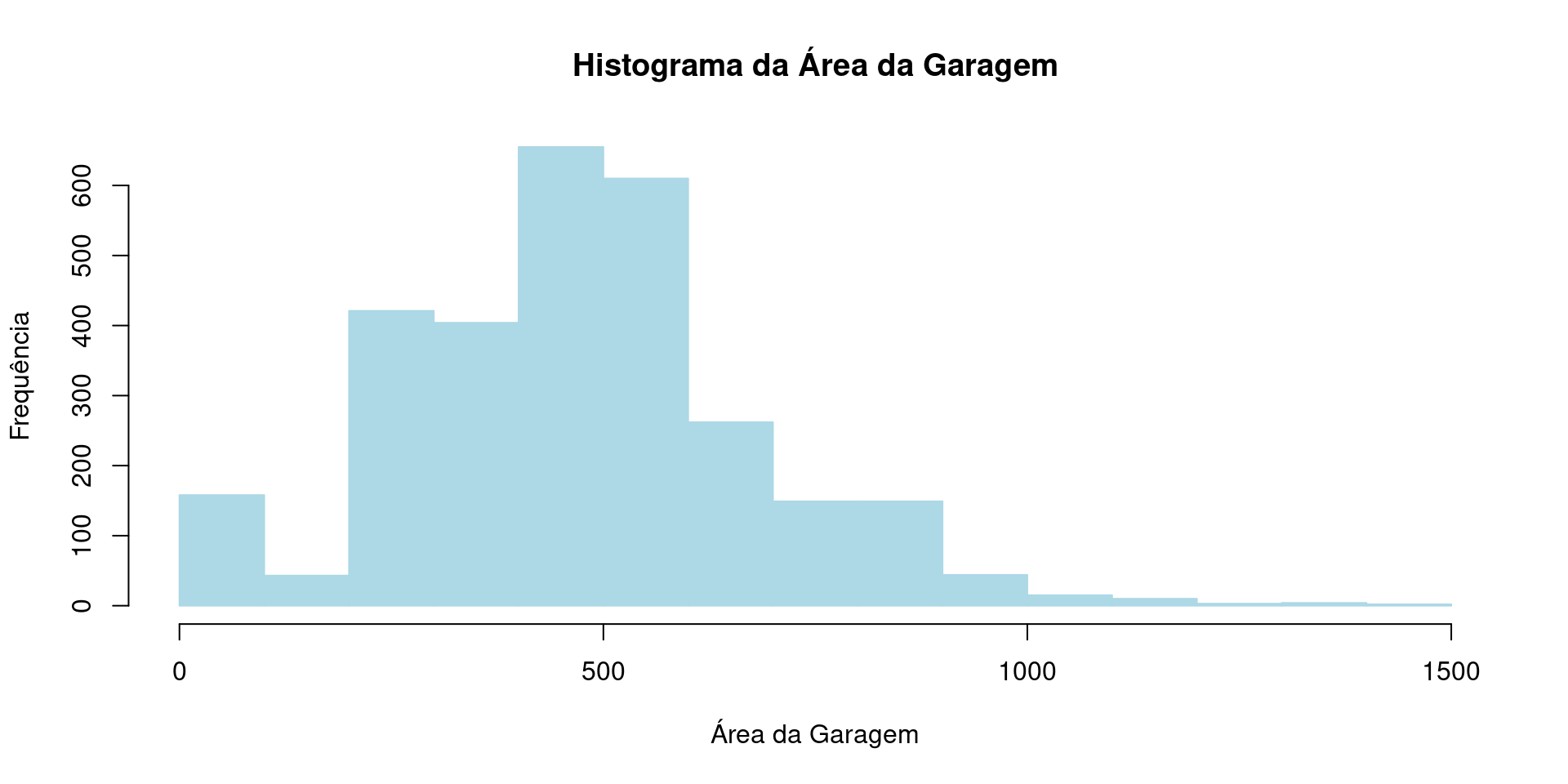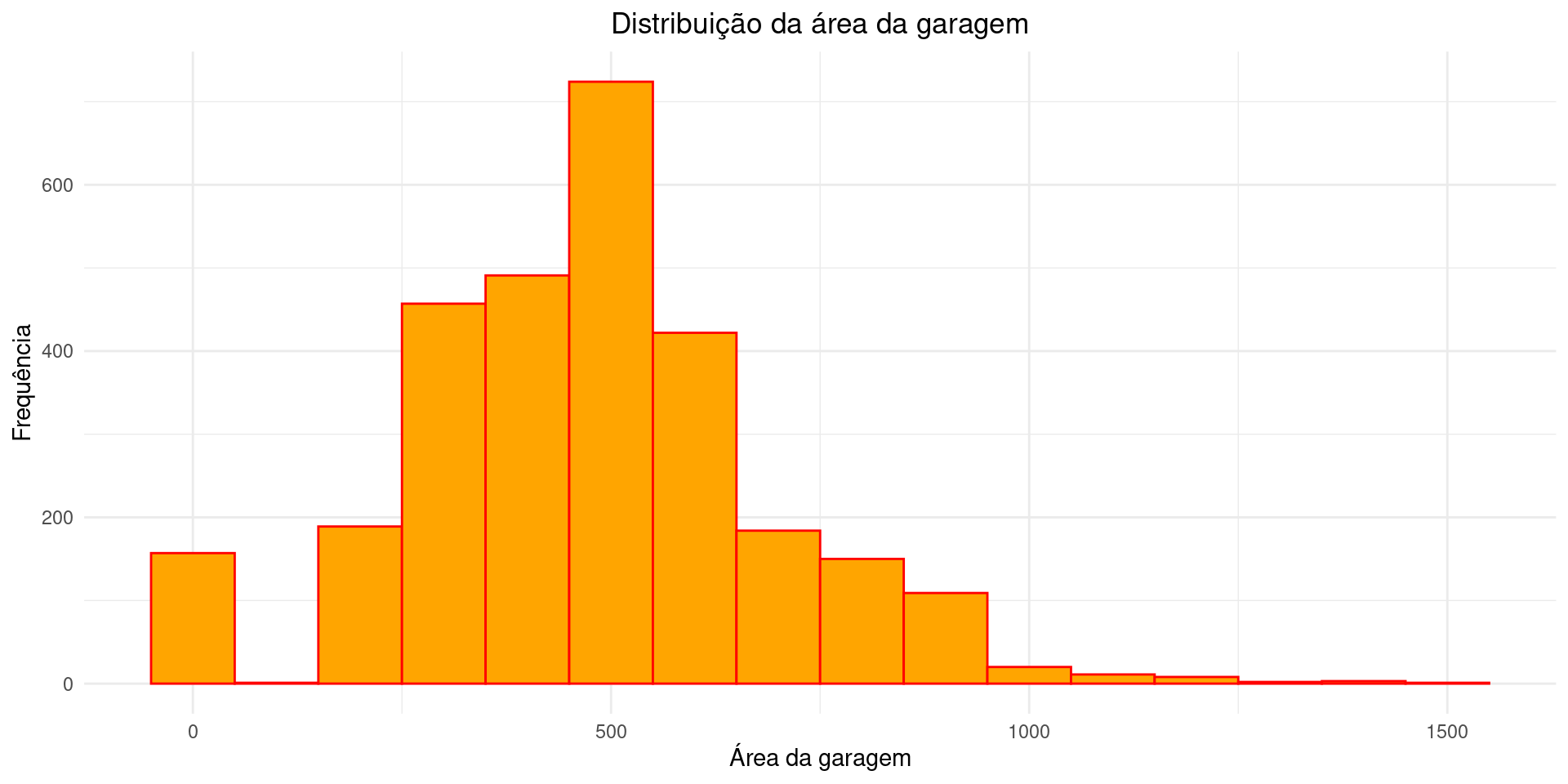 labs(title = "Distribuição da área da garagem", x = "Área da garagem", y = "Frequência") +