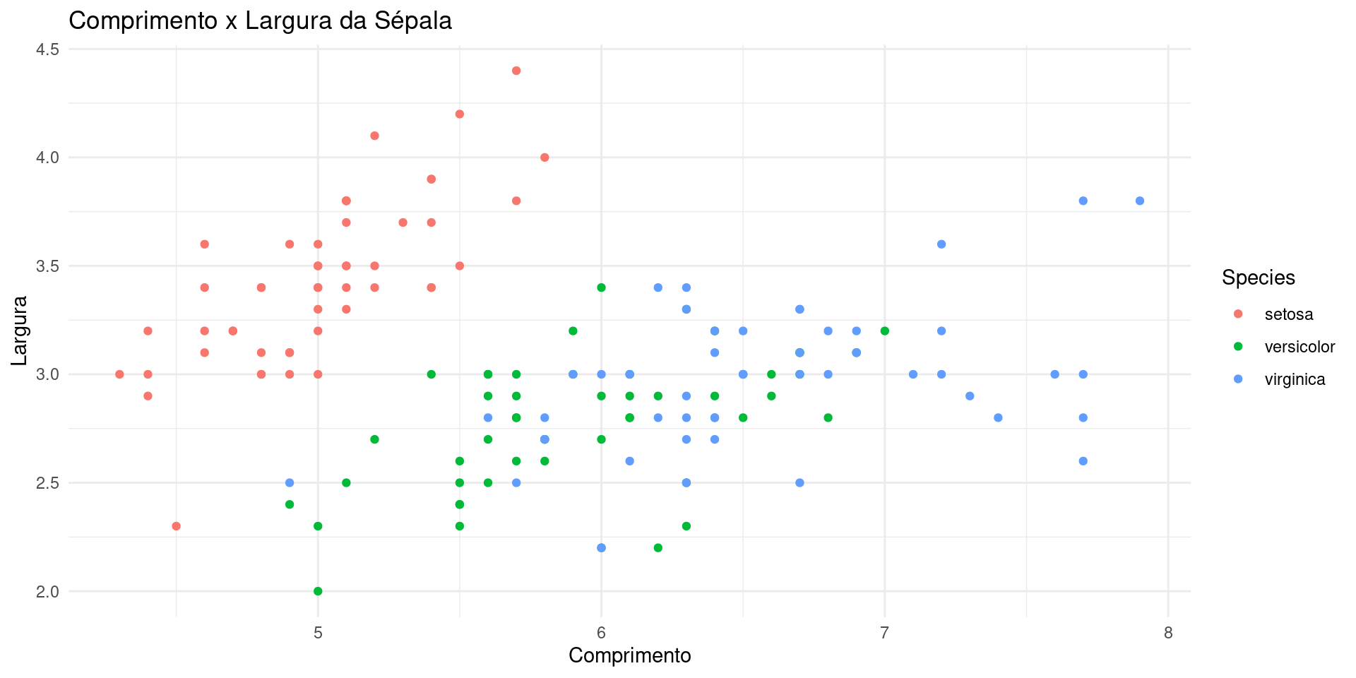 )O argumento color mapeia uma variável categórica para as cores dos pontos
