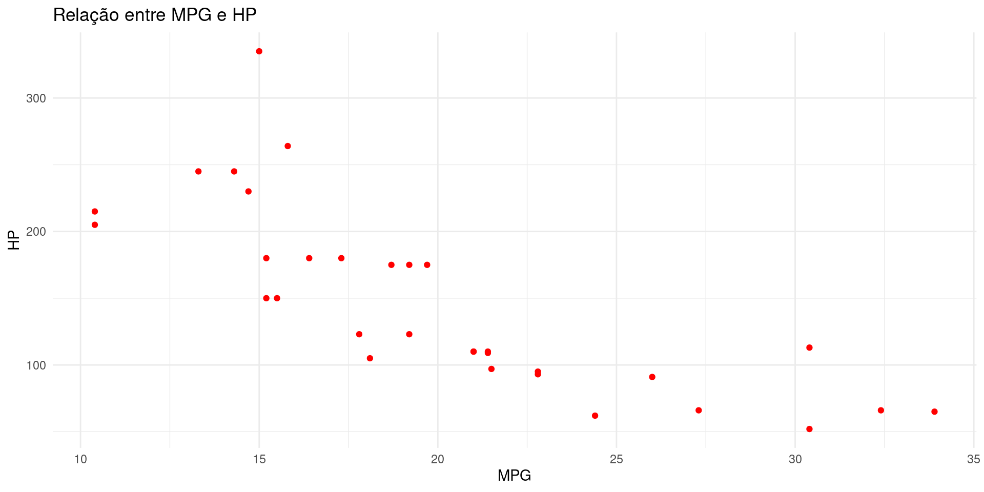 ggplot(mtcars, aes(x = mpg, y = hp)) +