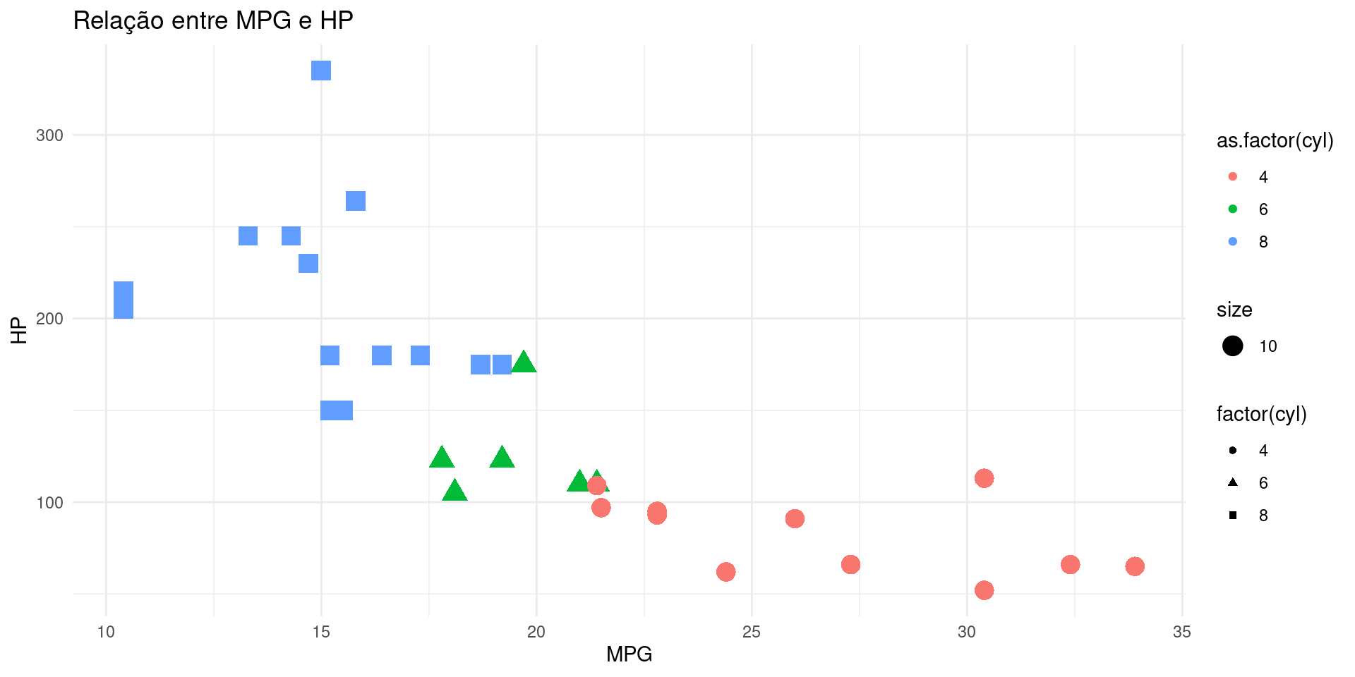 # Aesthetics: Mapeia variáveis nos dados para aspectos visuais do gráfico.