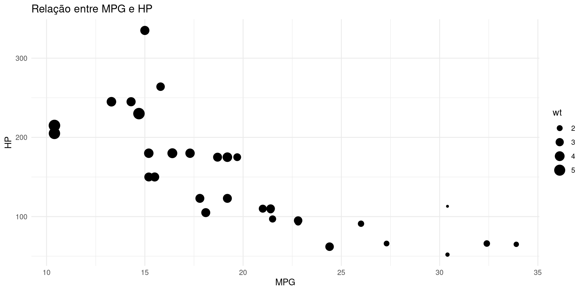 theme(plot.title = element_text(hjust = 0.5)) # Centraliza o títuloO pacote esquisse é uma ferramenta interativa para explorar e visualizar dados. podemos usá-lo para criar gráficos rapidamente e explorar a relação entre variáveis.