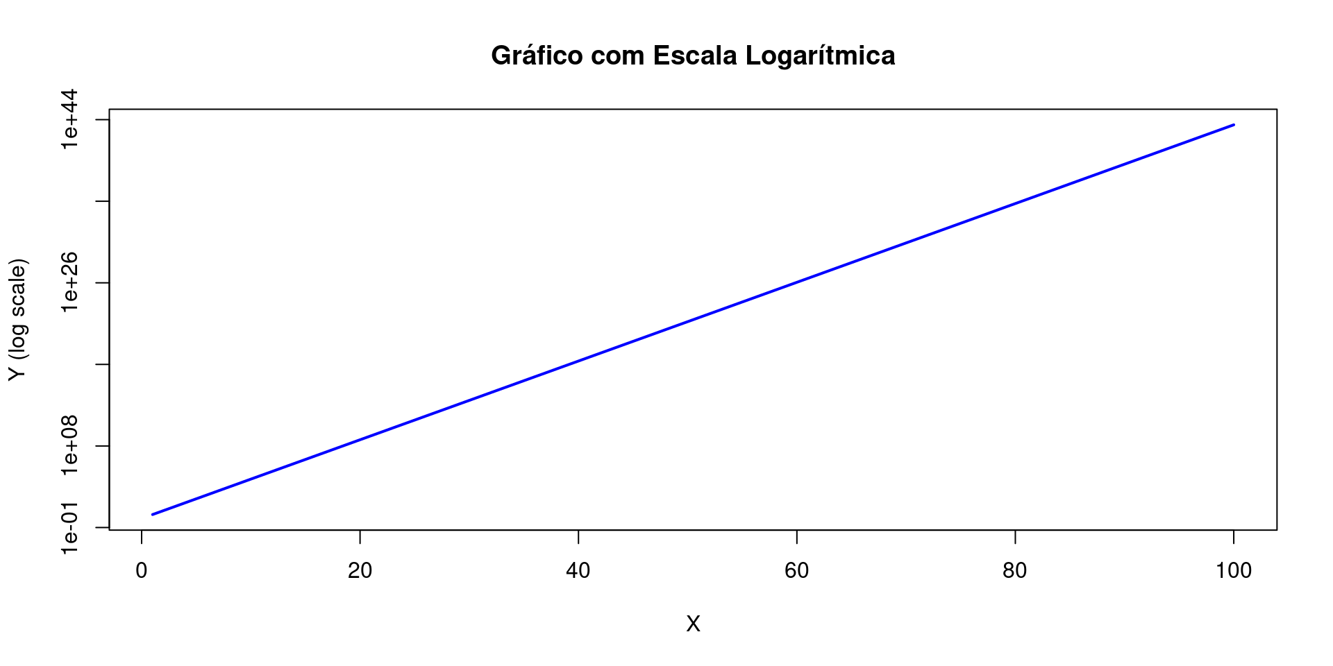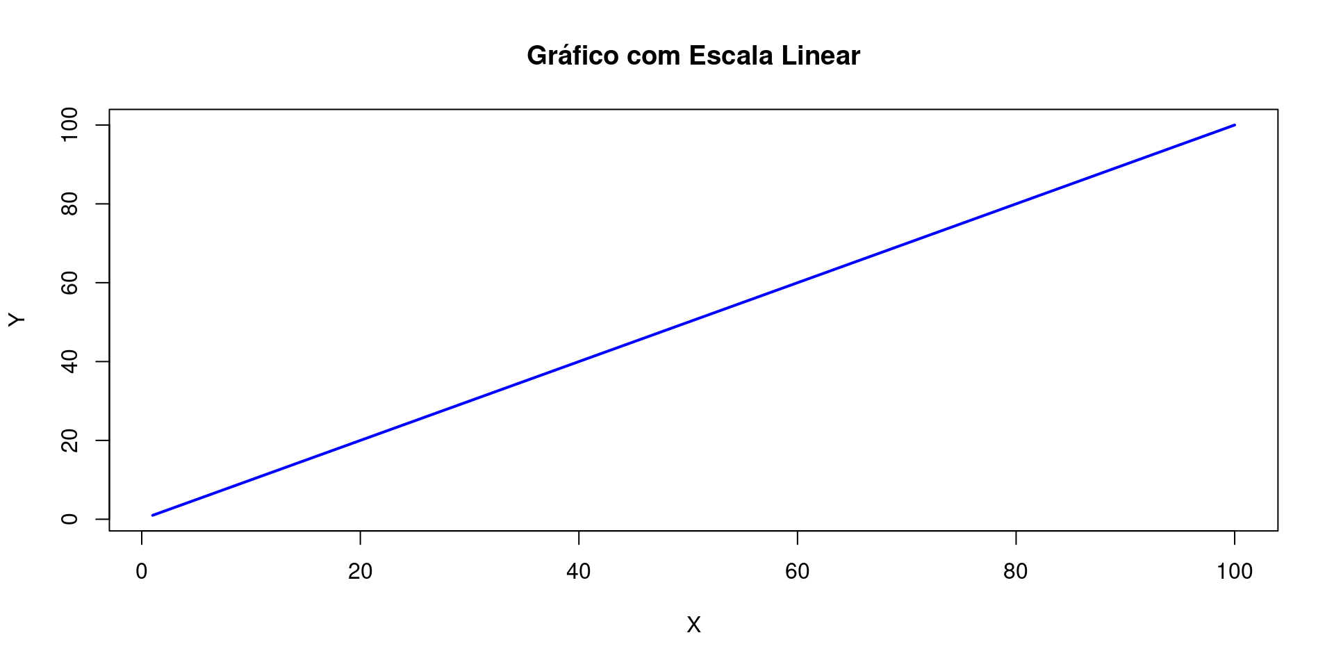 plot(x, y, type = "l", col = "blue", lwd = 2, xlab = "X", ylab = "Y", main = "Gráfico com Escala Linear")