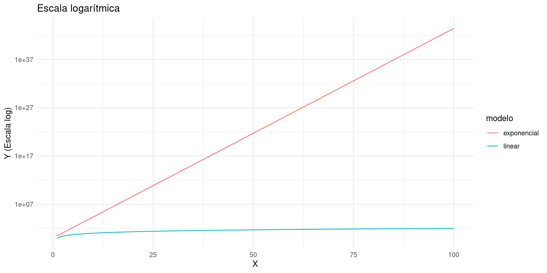 labs(title = "Escala logarítmica", x = "X", y = "Y (Escala log)") +